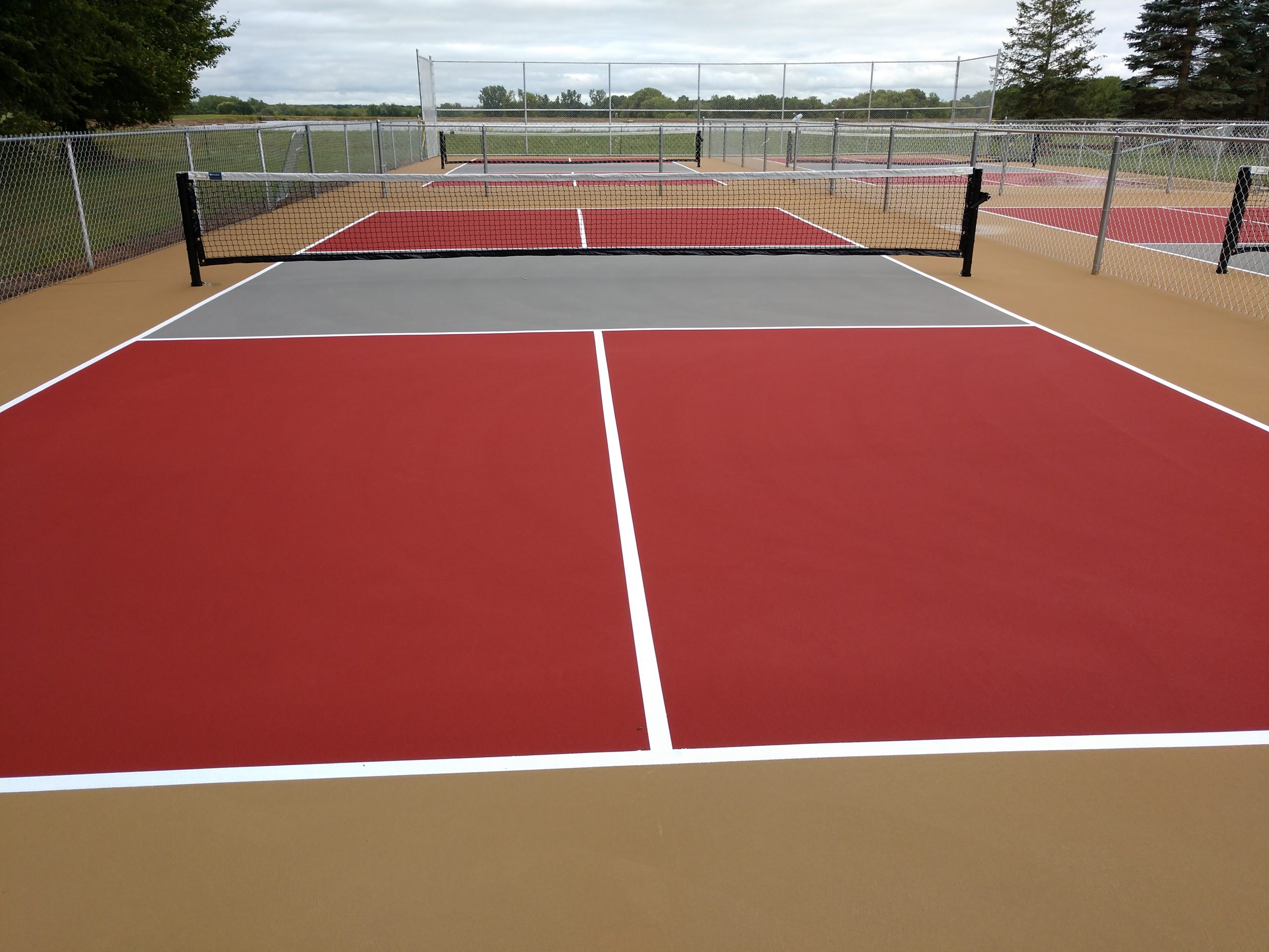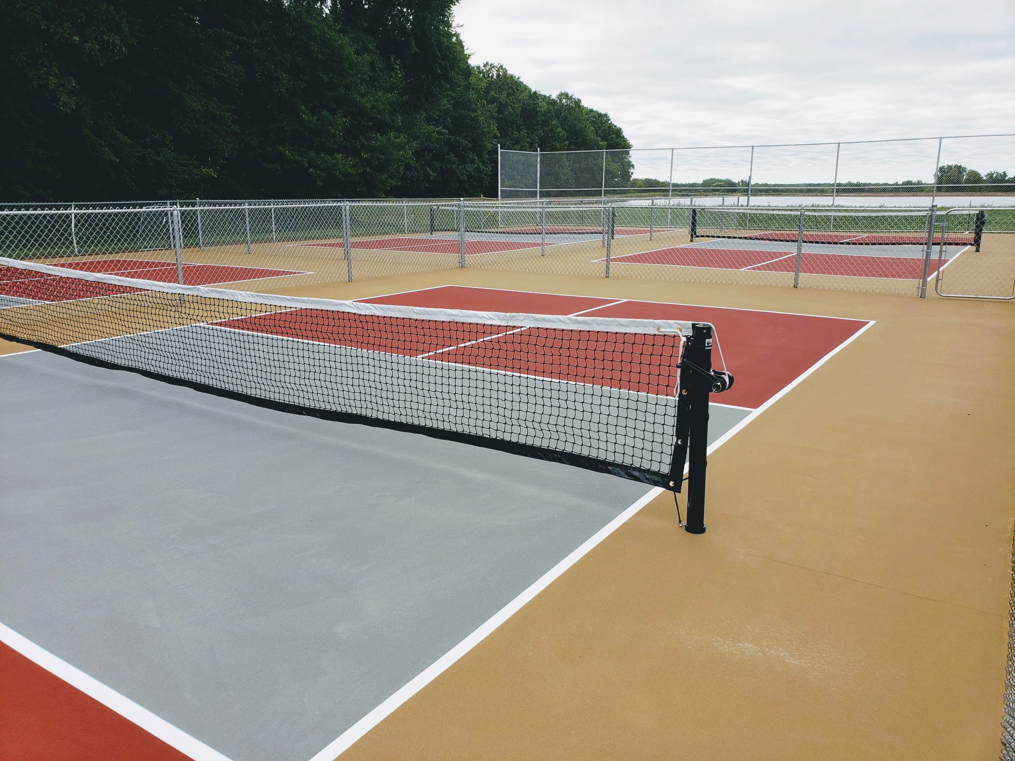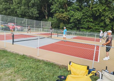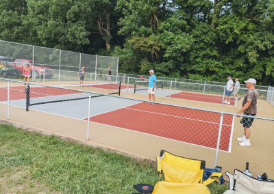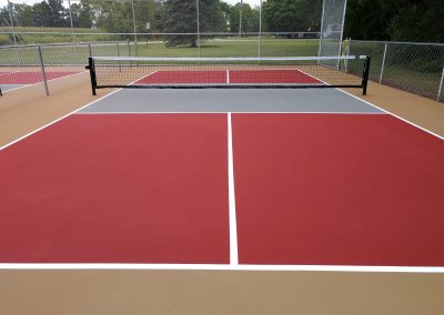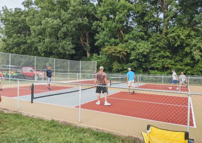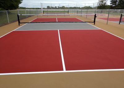 The project consisted of taking the old dilapidated tennis court and converting it into four separate tournament style pickleball courts, which allows up to 16 people to play at any one time. Not only are these courts tournament ready, they are stylish, classy and reflect well on the Lake community.